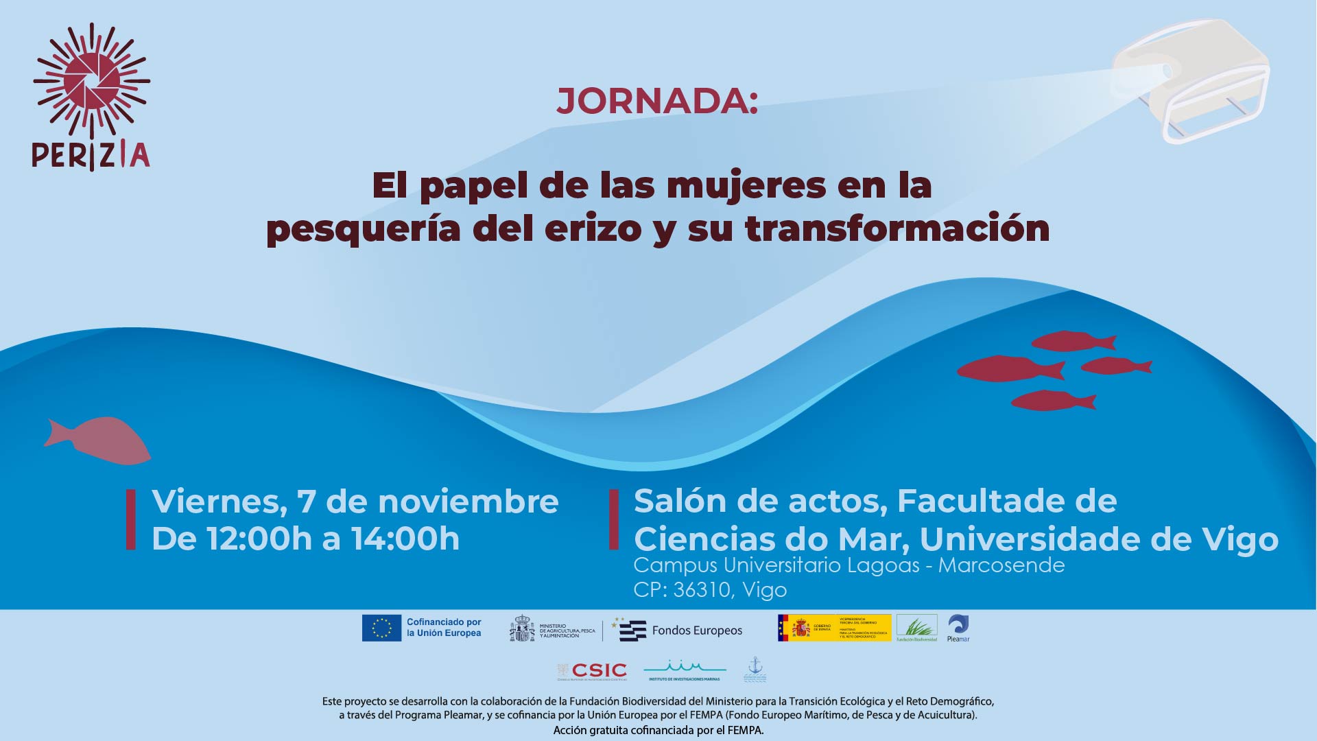 Esta segunda jornada que se celebra en el marco del proyecto PERIZIA reunirá a mujeres del sector pesquero y transformador vinculadas al aprovechamiento del erizo de mar en Galicia, en un coloquio abierto sobre producción, sostenibilidad e innovación que tendrá lugar el 7 de noviembre en la Universidade de Vigo.