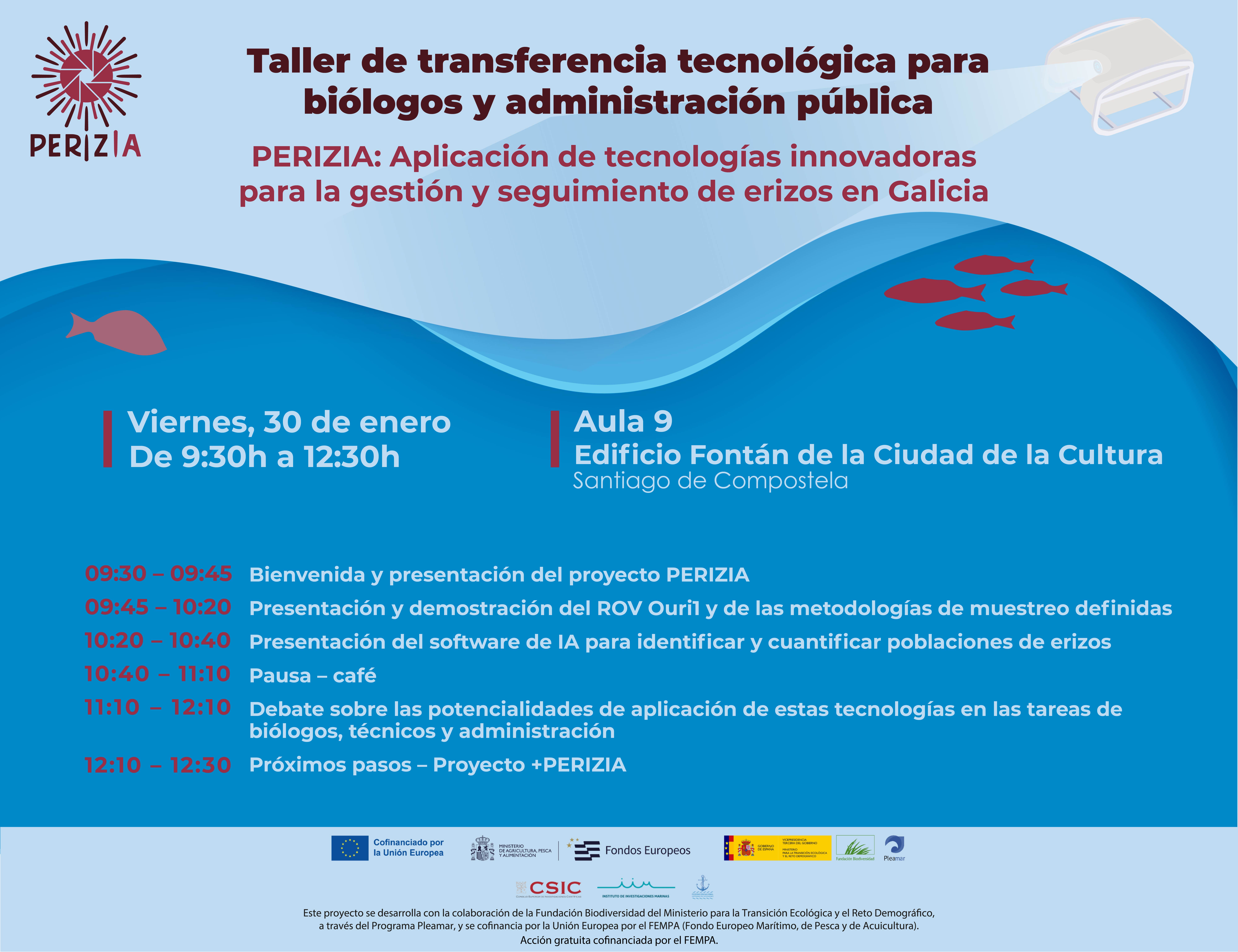 Invitación para la asistencia al taller de transferencia de la utilidad de las herramientas de evaluación de las poblaciones de erizo. Dirigido a los responsables de la administración para la gestión de los recursos marisqueos y a los representantes de las cofradías que explotan dicho recurso.