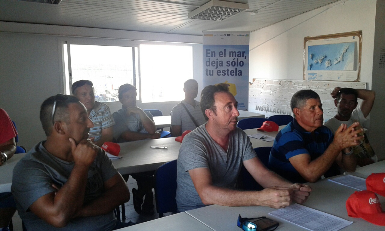 Al taller acudieron pescadores de pesca artesanal y patrones de catamaranes que desplazan a los turistas a la reserva natural Isla de Lobos para recibir información sobre Buenas Prácticas Medioambientales en la generación de residuos por parte de los usuarios de estas embarcaciones y de los generados por la propia embarcación.