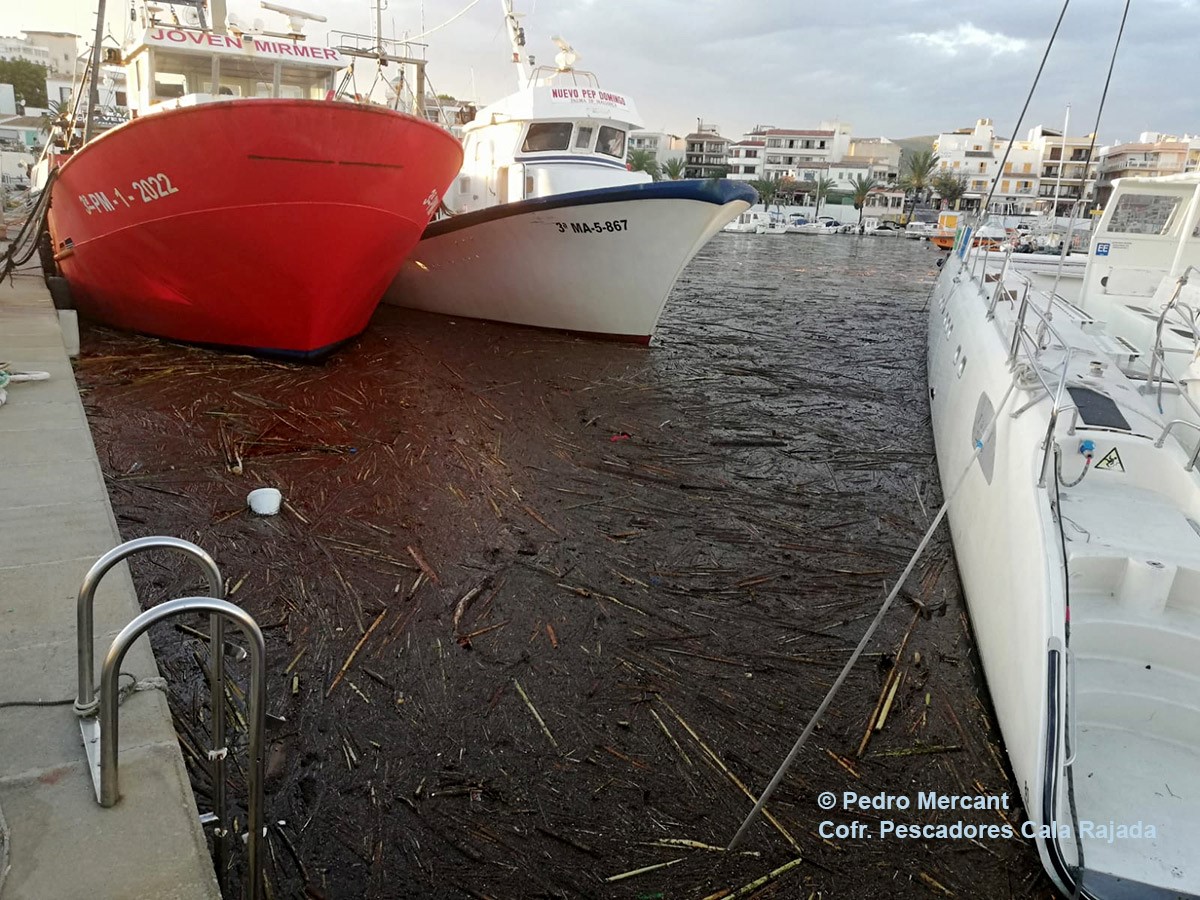 Las inundaciones afectan al puerto de Cala Rajada en las inmediaciones de la Reserva Marina de Interés Pesquero de Levante de Mallorca Cala Rajada, limitando la actividad pesquera tradicional e inundando el puerto de todo tipo de restos arrastrados al mar por las riadas.