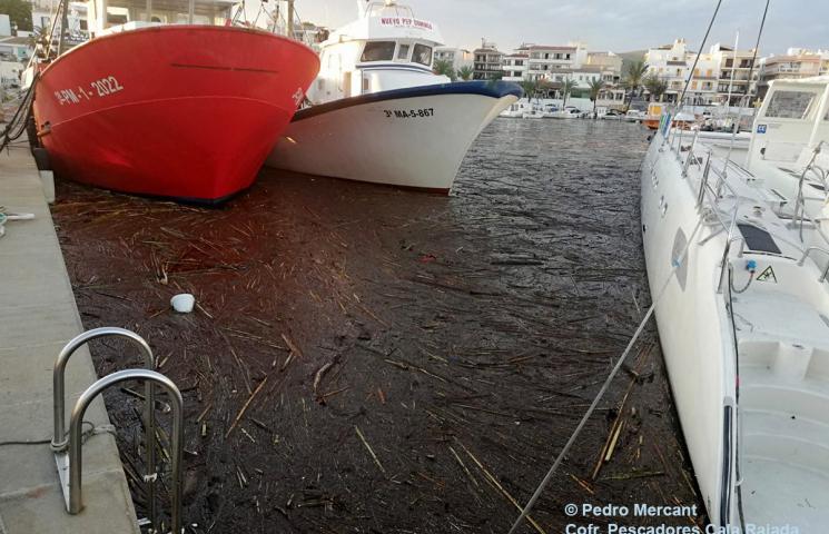 Las riadas debidas a las lluvias torrenciales en Sant Llorenç, que, llegaron a dejar hasta 72 litros por metro cuadrado en una hora, desembocaron en el puerto de Cala Rajada dejando allí restos vegetales, barro y residuos que habían sido arrastrados a su paso.