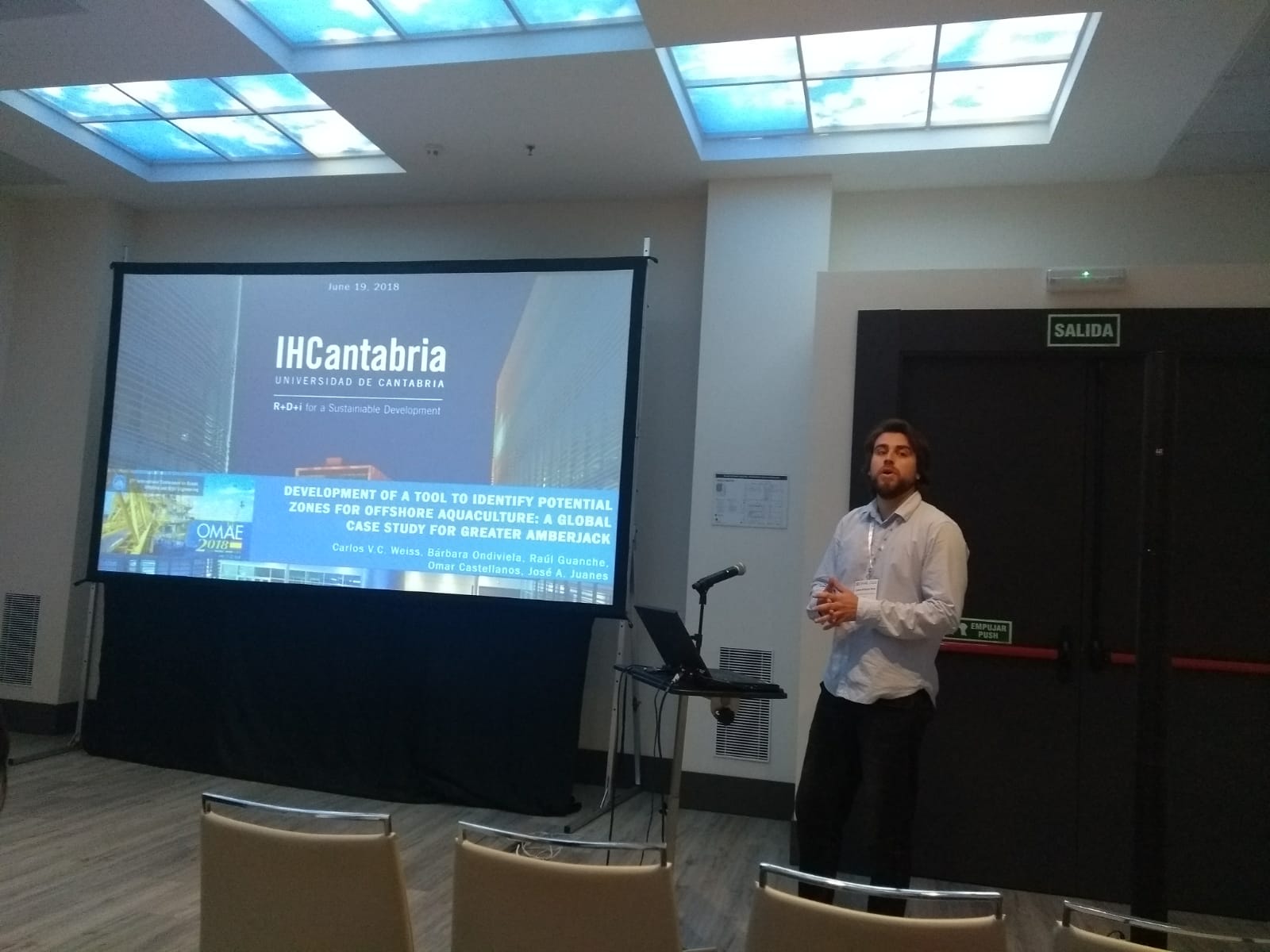El proyecto ATLAS fue presentado ayer en el congreso de ingeniería offshore OMAE2018 por parte del investigador de IHCantabria Carlos Weiss (en la foto). En esta presentacion Carlos expuso un caso de estudio en el que pudo aplicar el conocimiento desarrollado en ATLAS, y en el que se pudo avanzar como serán los producto que derivarán del proyecto.