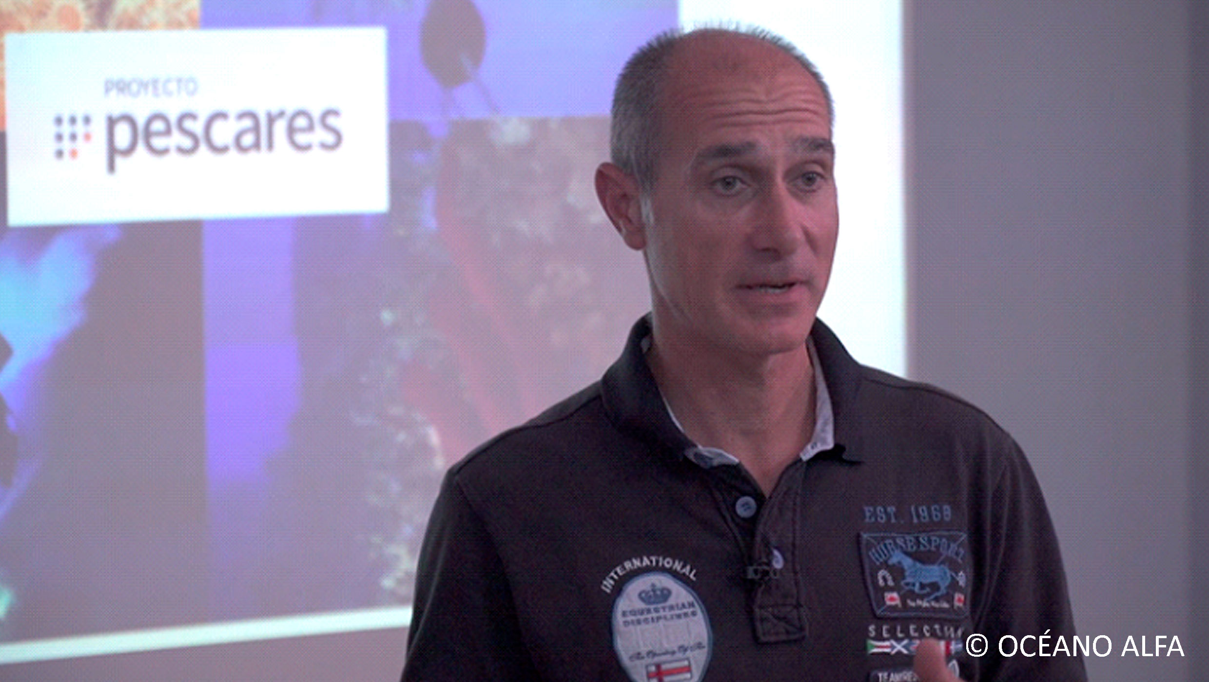 Ignacio Cayón, representante dentro del Proyecto PESCARES del sector del Buceo Recreativo Responsable de la Reserva Marina de Interés Pesquero de Punta de La Restinga-Mar de las Calmas, tomó la palabra, para enseñar y explicar a los pescadores artesanales asistentes, el funcionamiento y utilidad de parte del equipo utilizado en las inmersiones y el desarrollo de sus actividades en la reserva, así mismo expuso ciertas inquietudes e iniciativas referentes a la actividad como figura proteccionista y de conservación.
