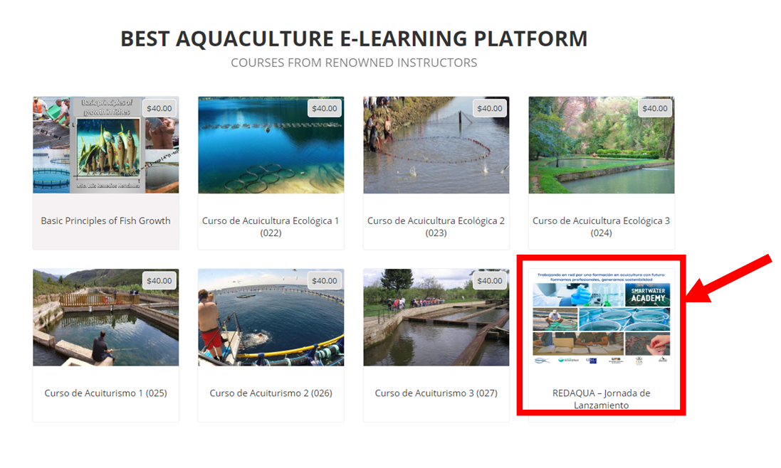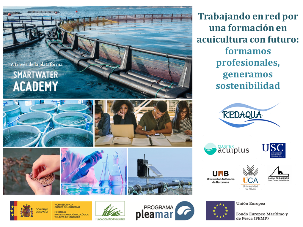 Ya está disponible para su visualización el webinar celebrada el pasado 29 de mayo a través de la plataforma SmartWater Academy, que celebramos en el marco del proyecto REDAQUA bajo el título Trabajando en red por una formación en acuicultura con futuro: formamos profesionales, generamos sostenibilidad.